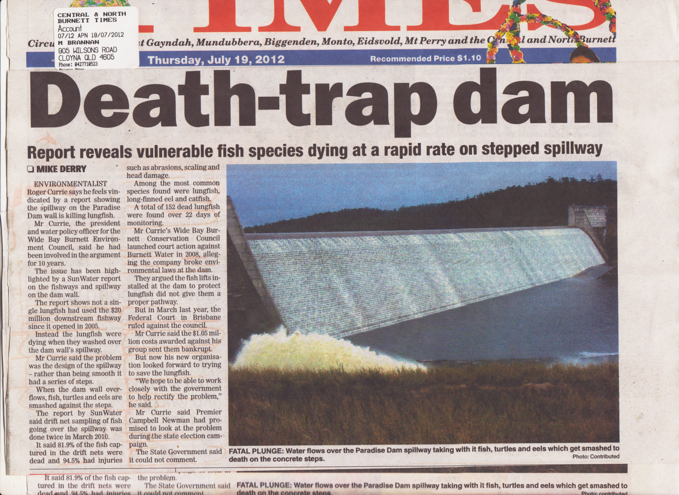 of fish injuries and death on the stepped spillway at Paradise Dam.” DEEDI report on Paradise Dam DSFW Monitoring